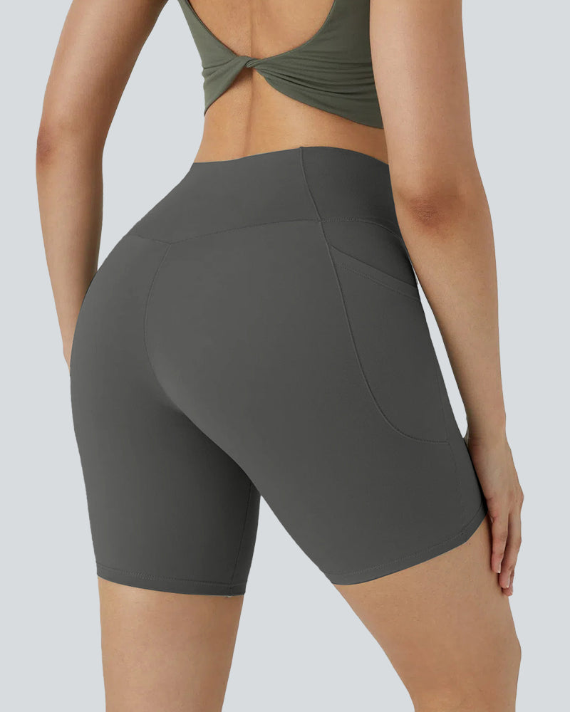 High Waisted Crossover Side Pocket Yoga Biker Shorts 3" for Women