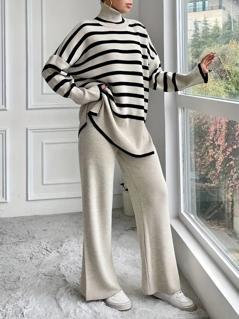Layla™ - Stilvolles gestreiftes Rollkragenhosen-Set