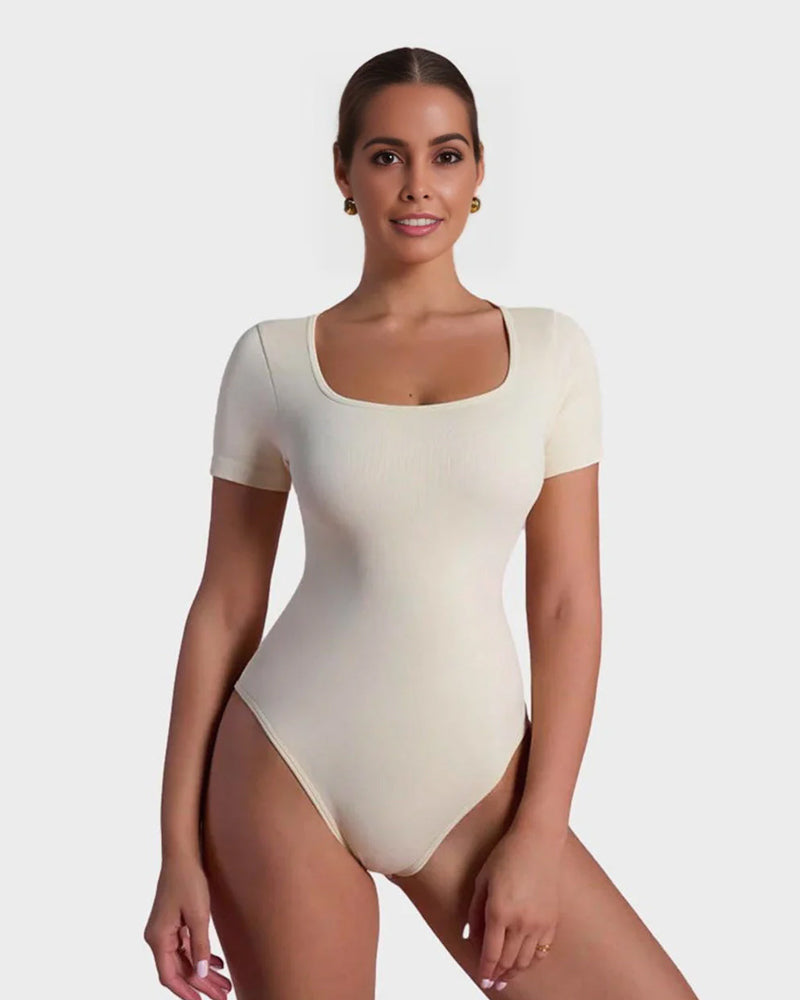 Bauchstraffender Body Shaper Einfarbiger Rundhals-Jumpsuit